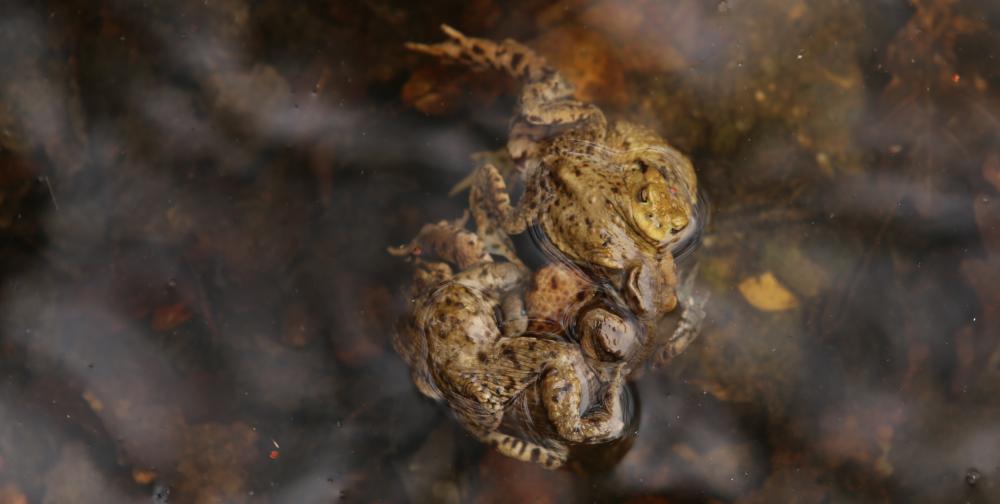 März 2014: Die liebestollen Frösche können es heuer gar nicht früh genug kriegen.