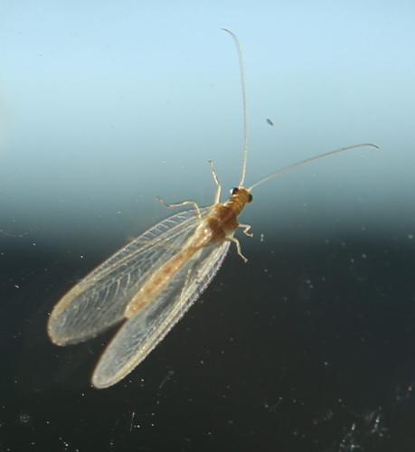 An der Fensterscheibe sonnt sich im späten November noch eine einsame Florfliege.