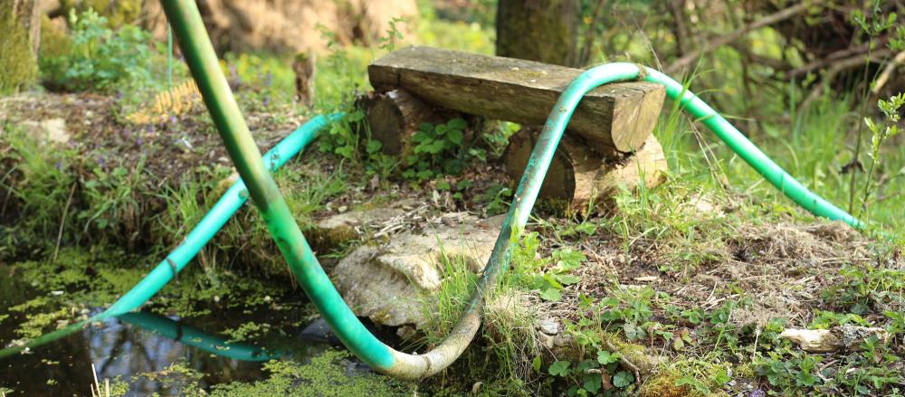 Die Schlauchskulptur soll den Teich mit Sauerstoff versorgen. (s.a.