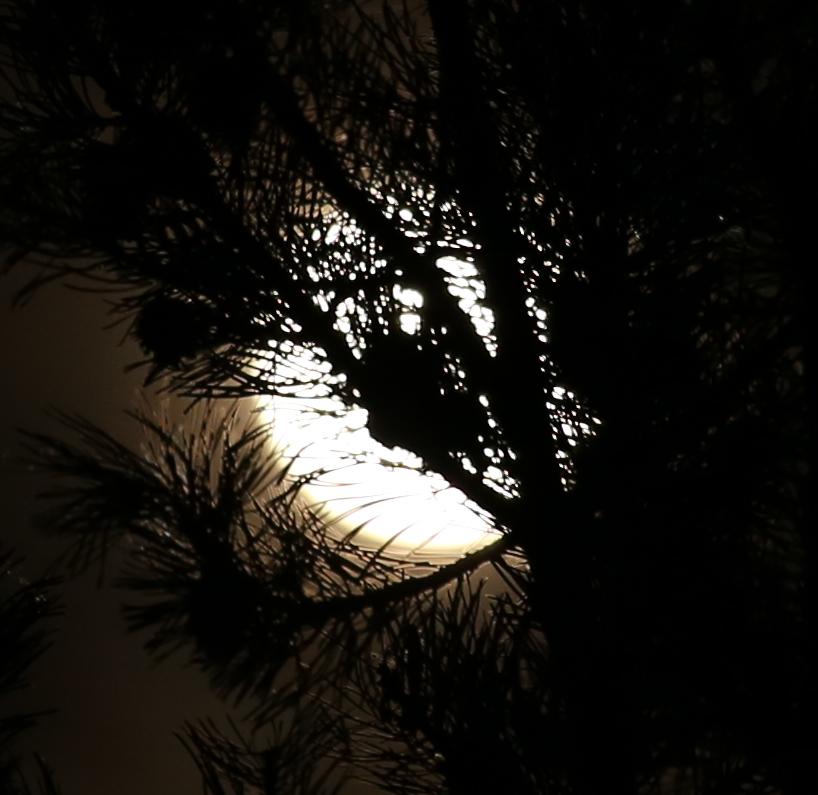 Der Vollmond ist aufgegangen und guckt mich in der Maiennacht unverwandt an.