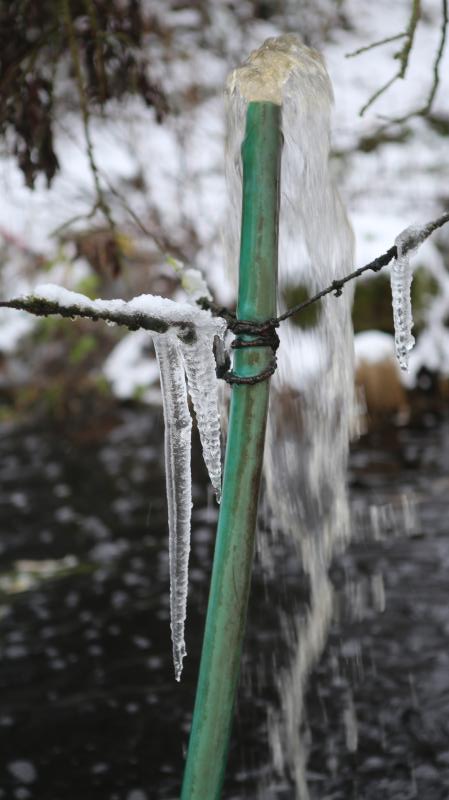 Mein "Teichspringbrunnen" sprudelt noch bei Temperaturen um den Gefrierpunkt.
