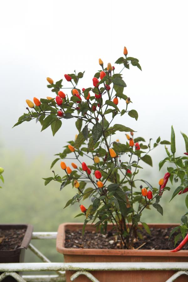Ende September traten die ersten Herbstnebel auf, jedoch keinerlei Frostgefahren. Das erlaubte fast allen Peperonisorten, auf der Balkonterrasse abzureifen.
