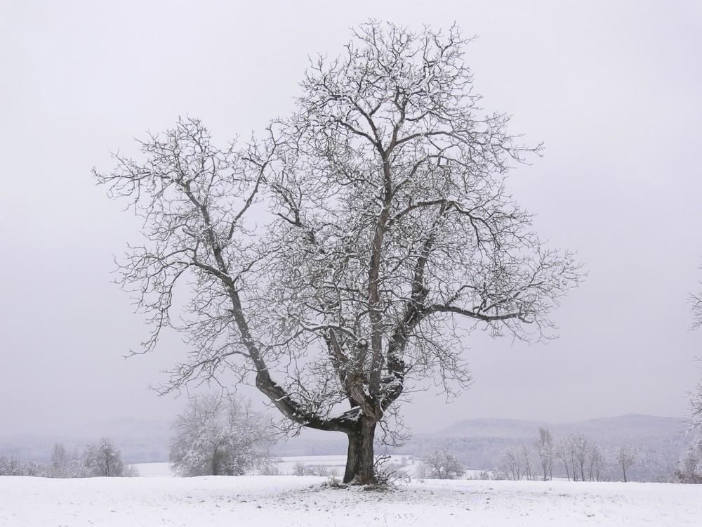 Traurig! Bis vor kurzem stand hier ein Landschaftsmonument von einem Nussbaum (Das Winterbild weiter unten zeigt ihn vor 10 Jahren);