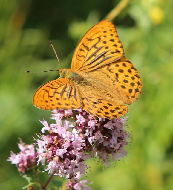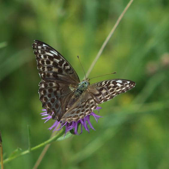 Ich bin ganz stolz! Zum ersten Mal überhaupt kam mir die dunkle Form des Kaisermantels auf meiner Waldwiese vor die Kamera, während die Normalform in großer Zahl um mich herumflatterte (s. untere zwei Bilder).