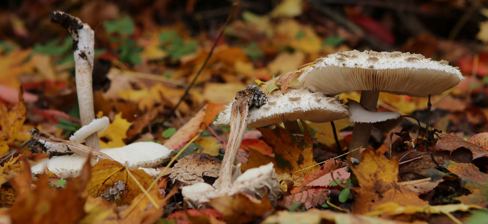 Wie trocken der Sommer letztlich war, konnte man an der Pilzflora beobachten. Für lange Zeit war so gut wie kein Pilz zu finden. Dann im Oktober schossen die Pilze nur so aus dem Boden: Parasolpilze und Hasenboviste waren die häufigsten. Aber auch etliche andere übliche und unübliche Arten ließen sich sehen. Besonders ungewöhnlich war, dass typische Sommerpilze gleichzeitig mit typischen Spätpilzen auftraten. Hier eine kleine "Bilderflut" zum Pilzaspekt der Saison (allesamt aus Monat Oktober).