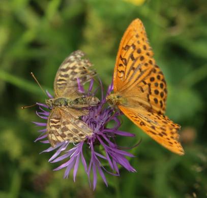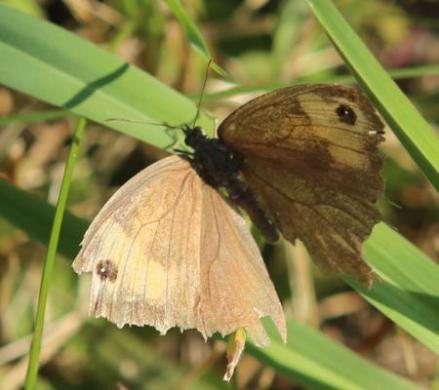 Auch das große Ochsenauge (Maniola jurtina) (drittes Bild) ist schon ziemlich zerzaust. Es ist schon seit Monaten unterwegs.