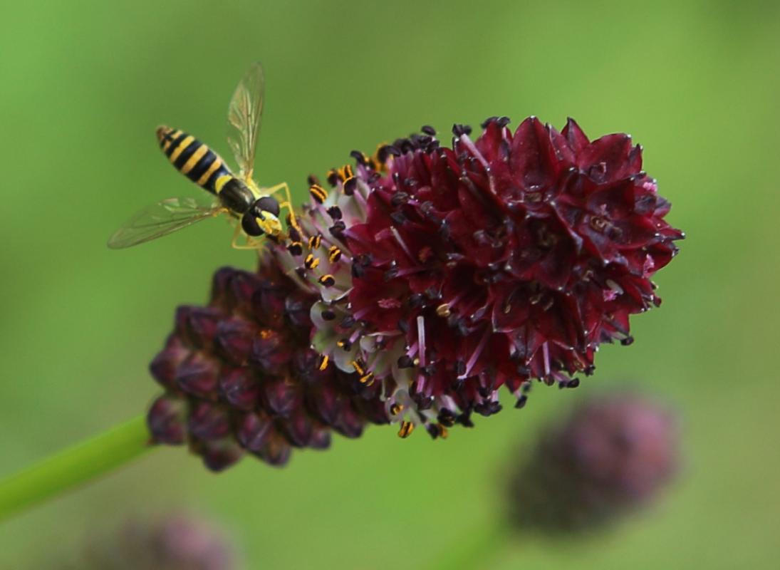 Im Hochsommer suche ich den Großen Wiesenknopf (Sanguisorba officinalis) nach Eiern oder Räupchen des Wiesenknopf-Ameisenbläulings ab, bisher immer ohne Erfolg (obwohl ich den Dunklen Wiesenknopf-Ameisenbläuling (Phengaris nausithous) regelmäßig als Falter sehe). Auf den Wiesenknopfblüten sehe ich stattdessen oft manch anderes "Kleingetier" (fressen Fliegen Bläulingseier oder -larven?? Denkbar wäre es).