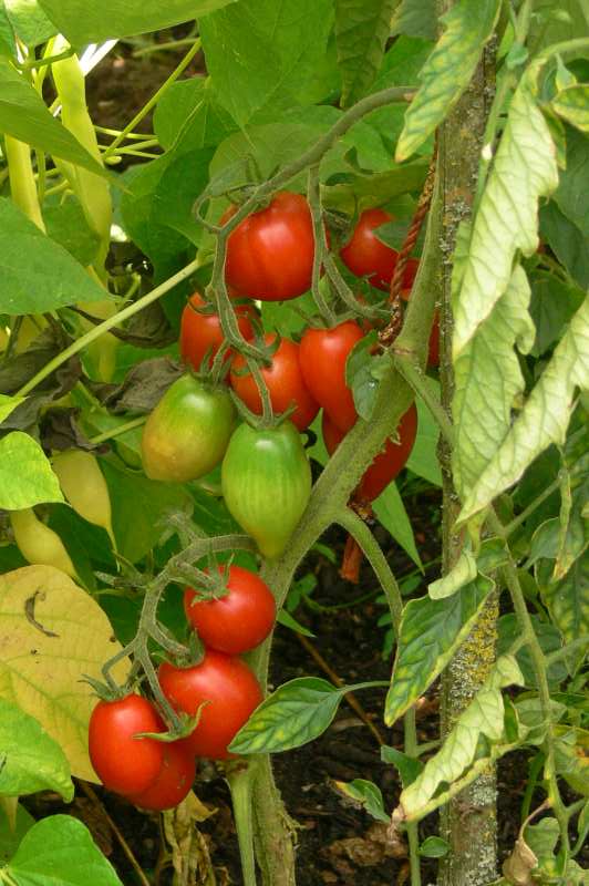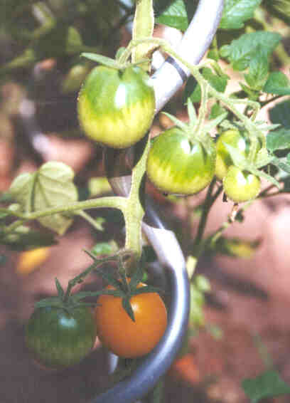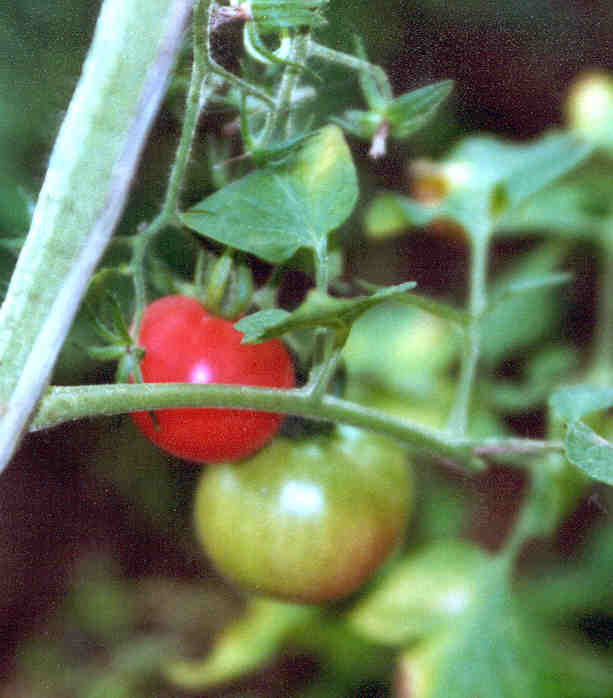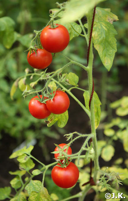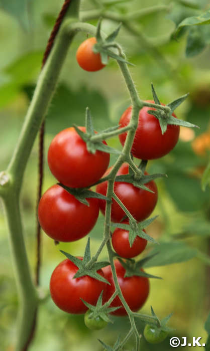 {02} Wohlschmeckende Kirschtomate an zarter Pflanze von ca. 1,20 Höhe.