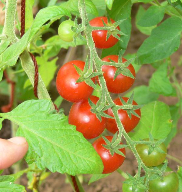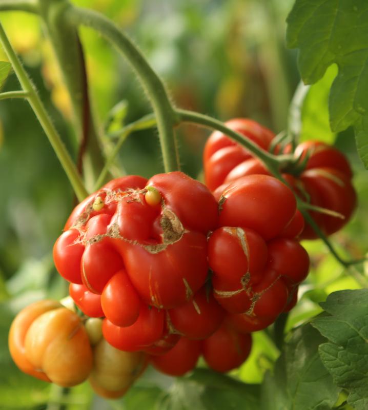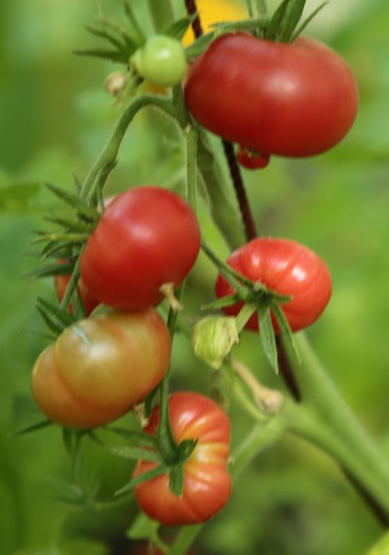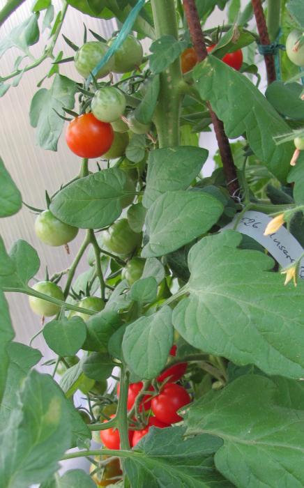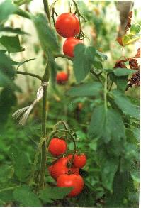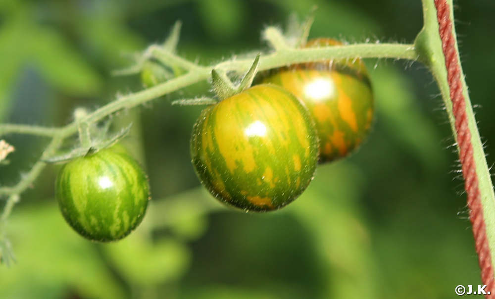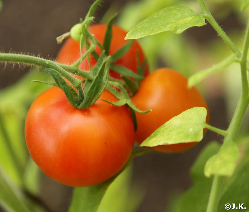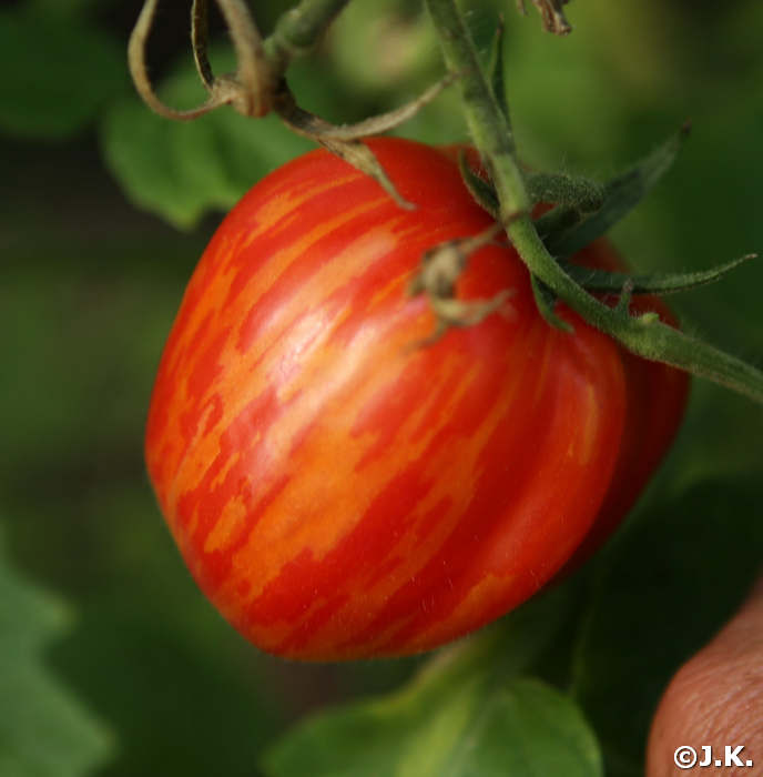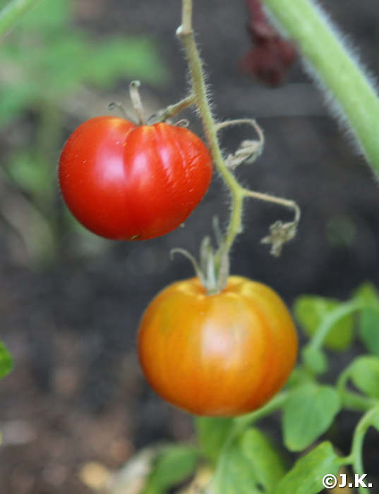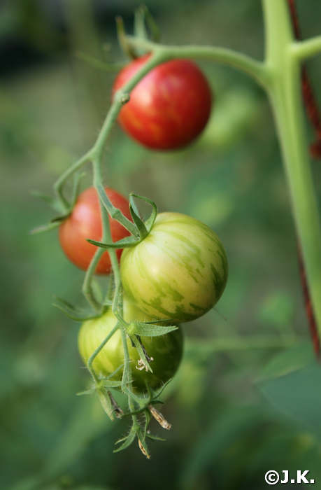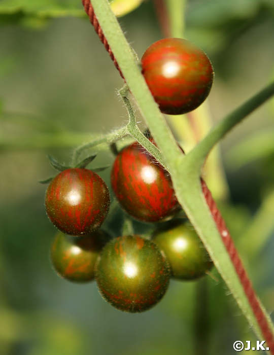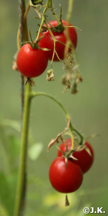Pflanze. Früchte 3-6cm, etwas hoch gebaut (Ketchuptyp), attraktiv