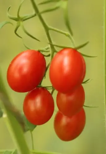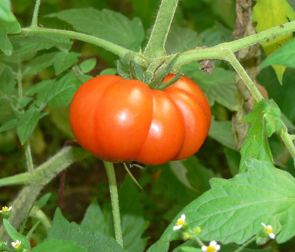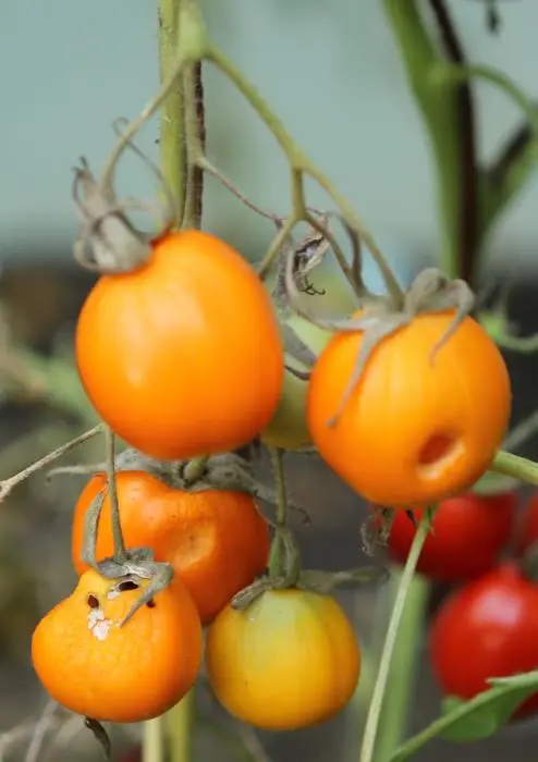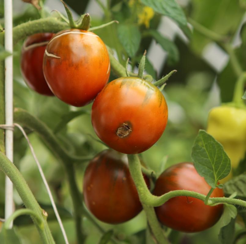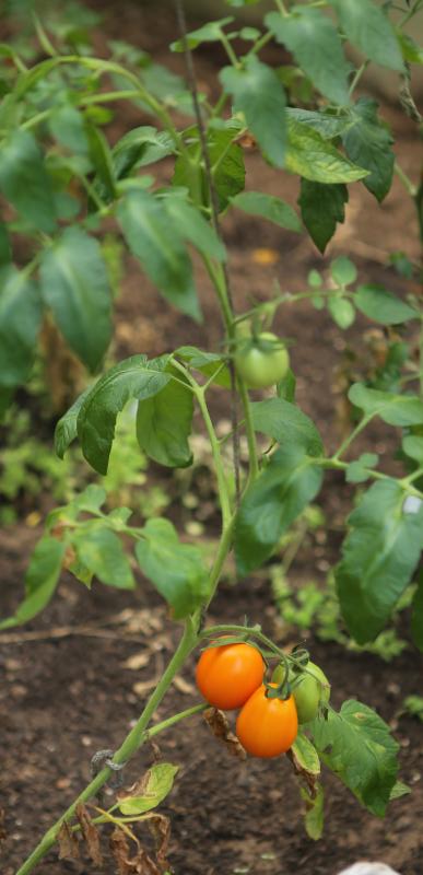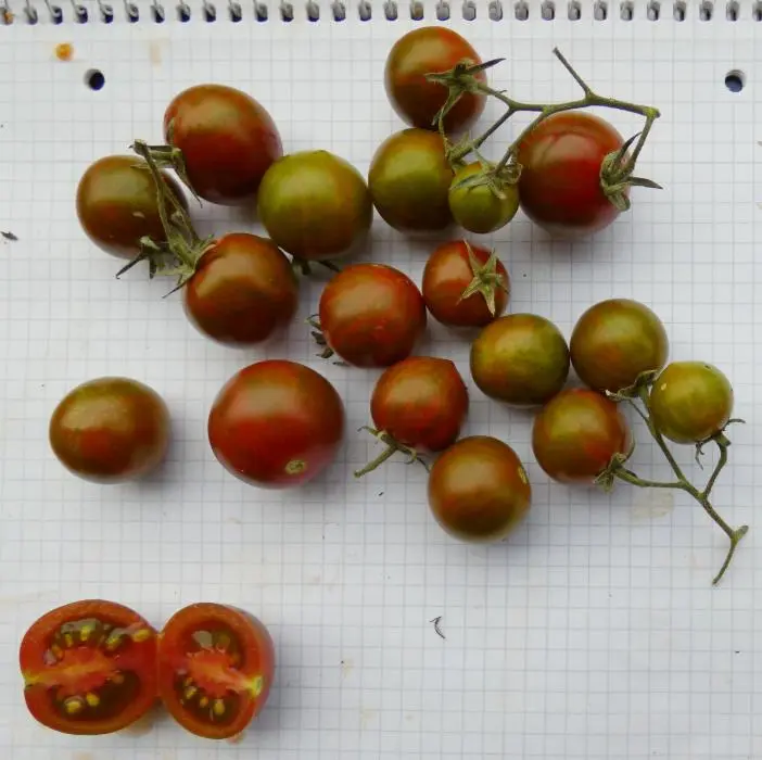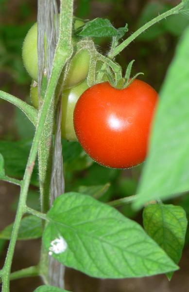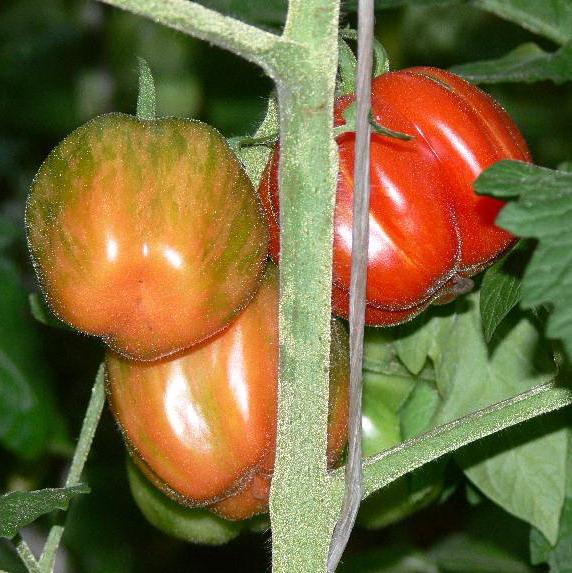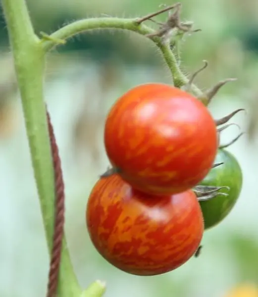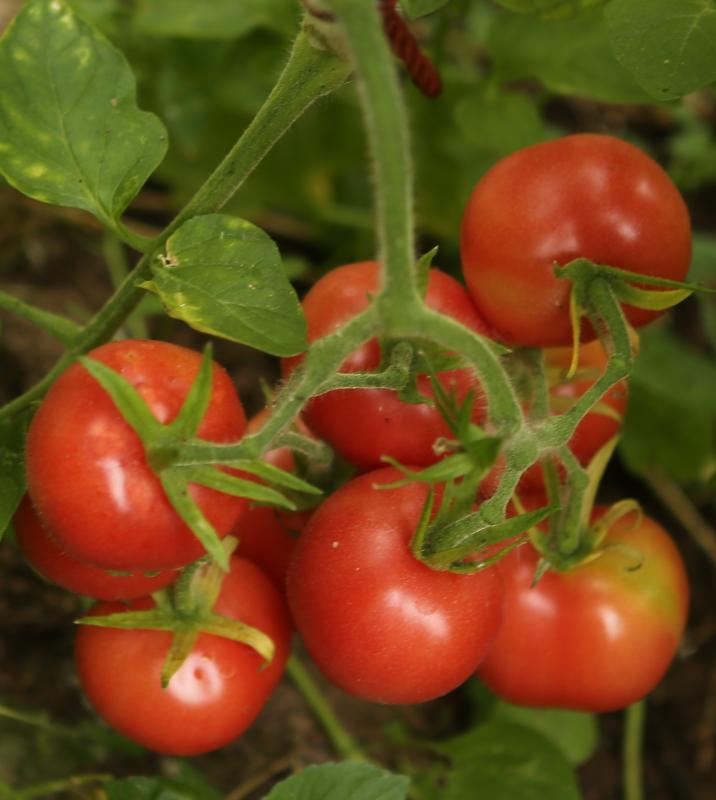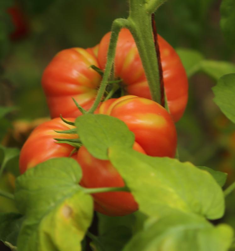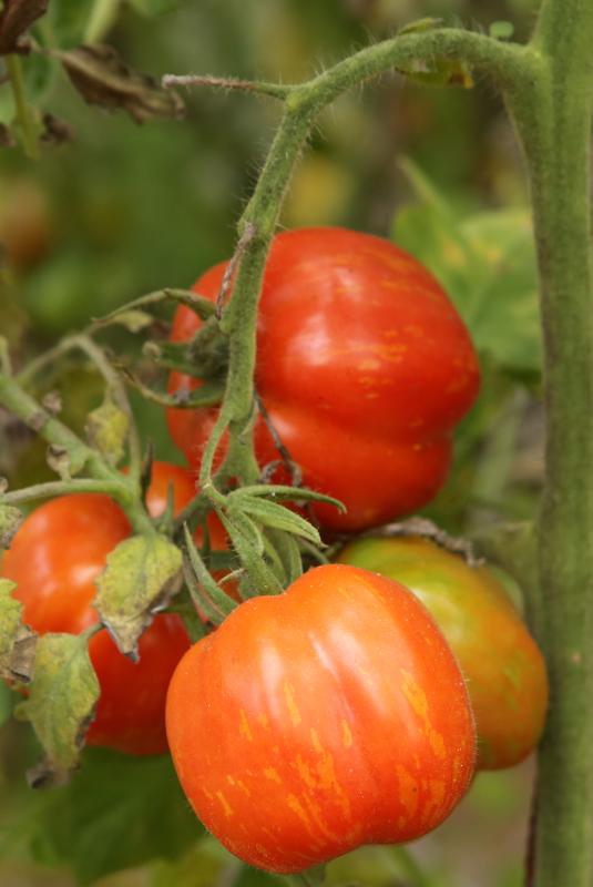 Pflanze. Früchte 3-6cm, etwas hoch gebaut (Ketchuptyp), attraktiv