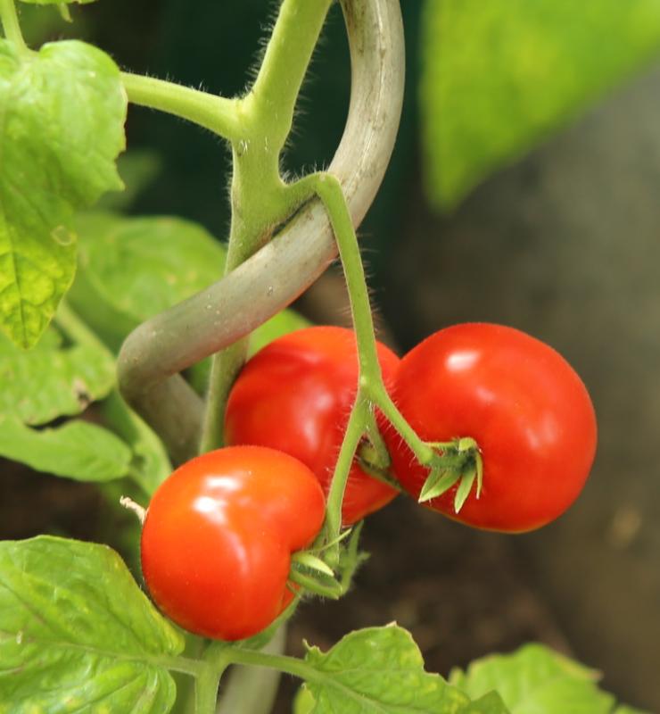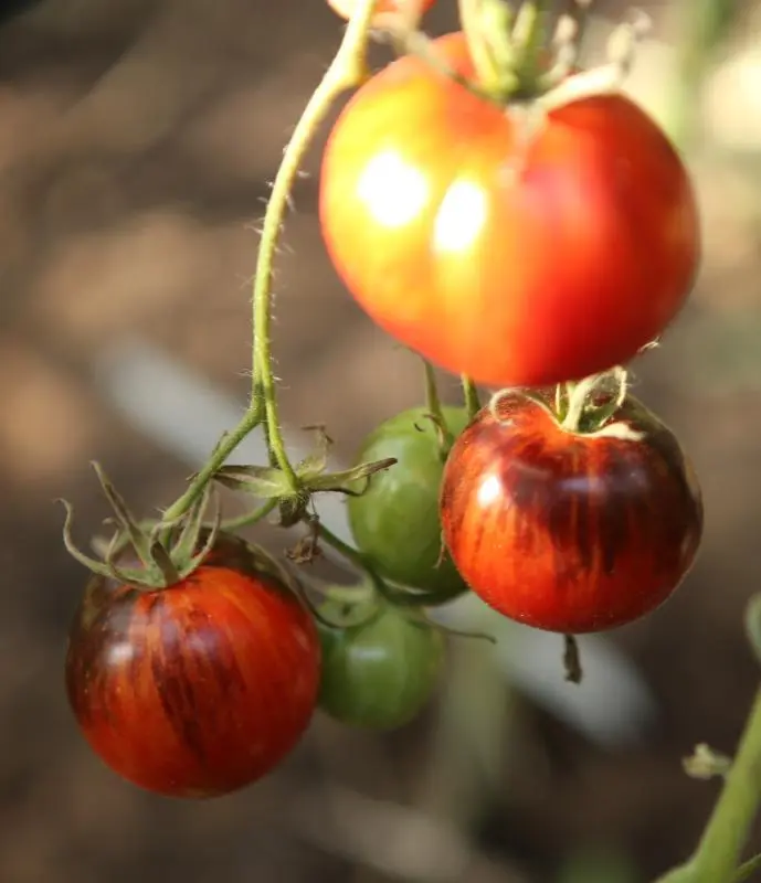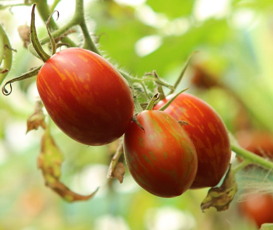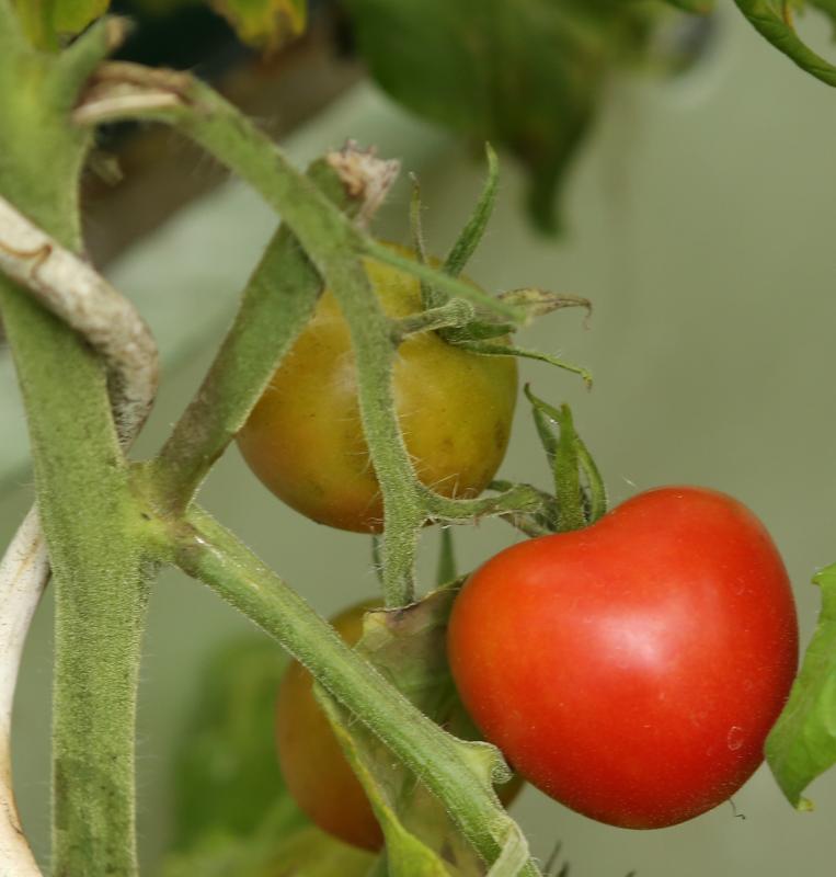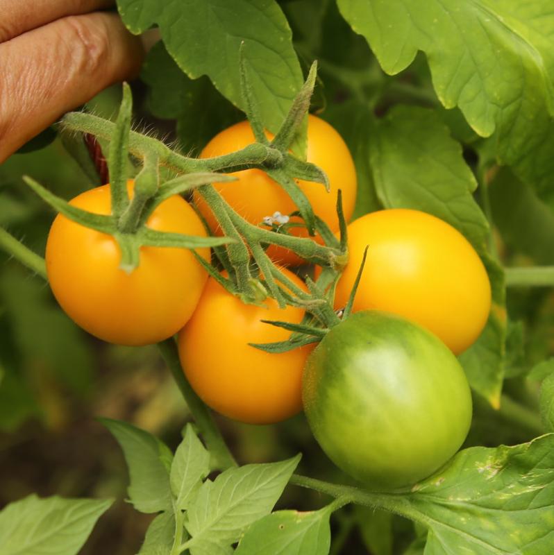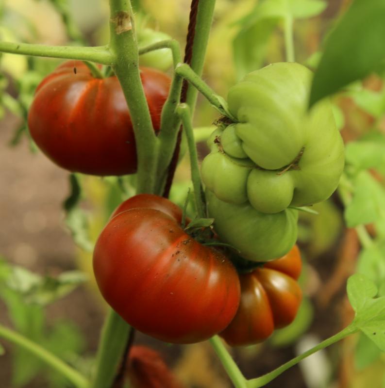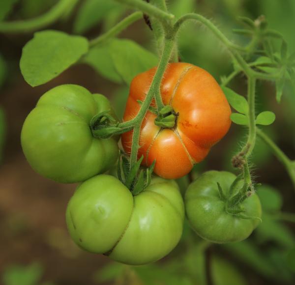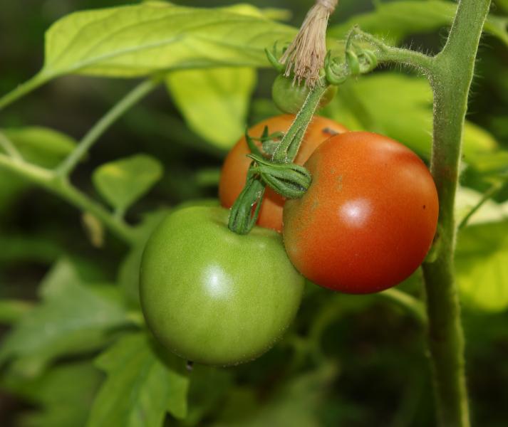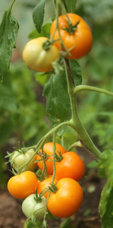 Pflanze. Früchte 3-6cm, etwas hoch gebaut (Ketchuptyp), attraktiv