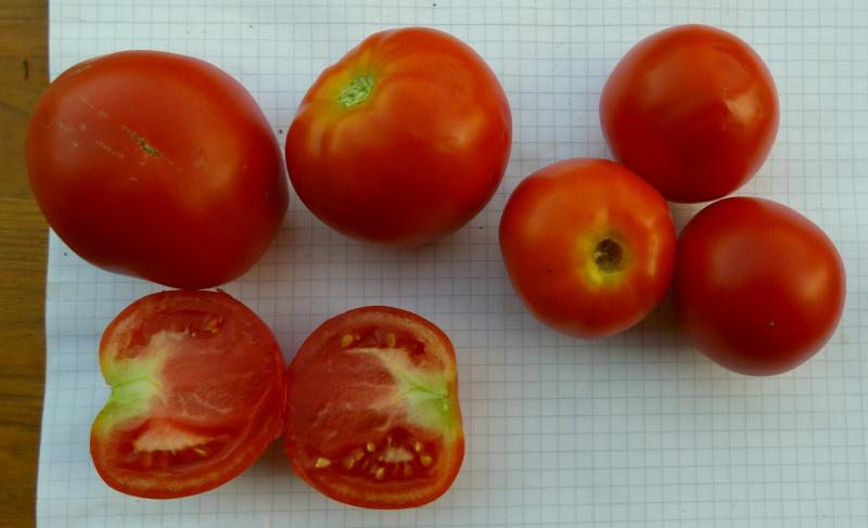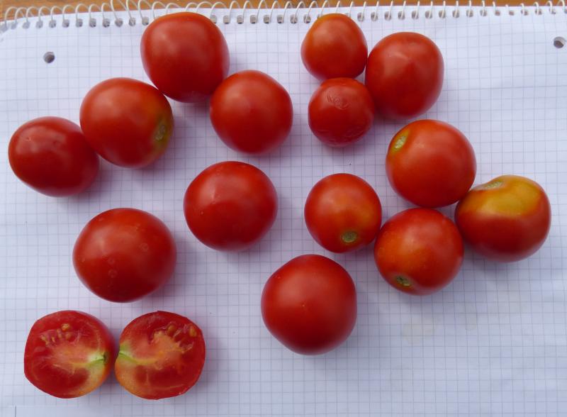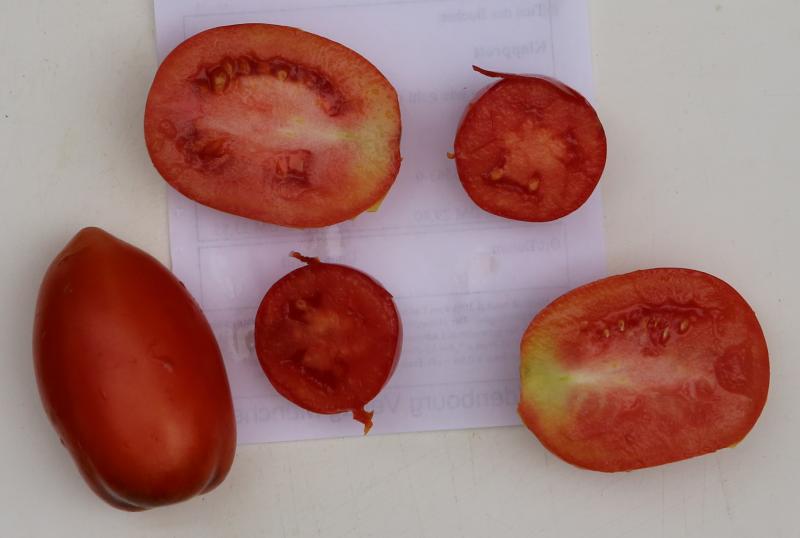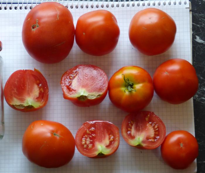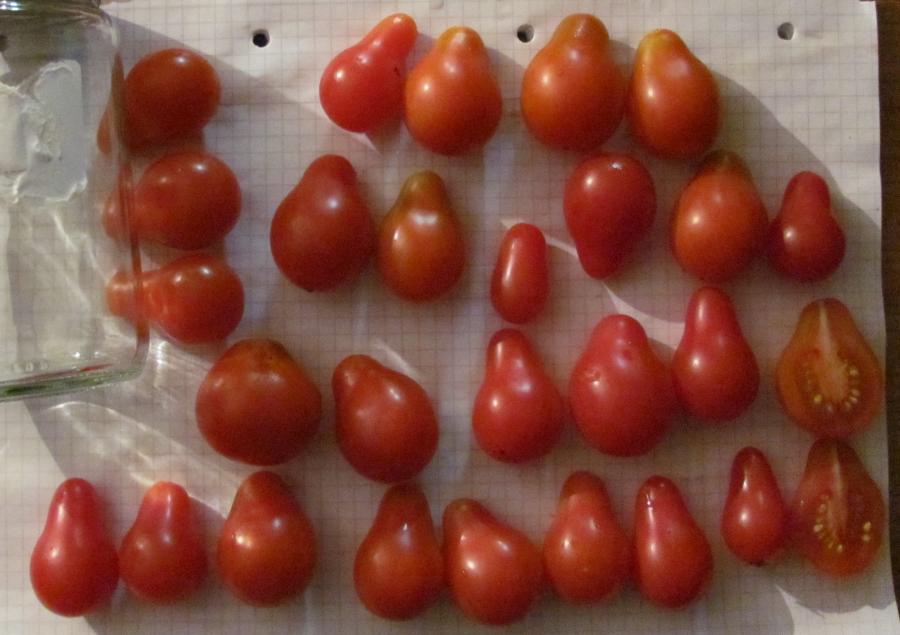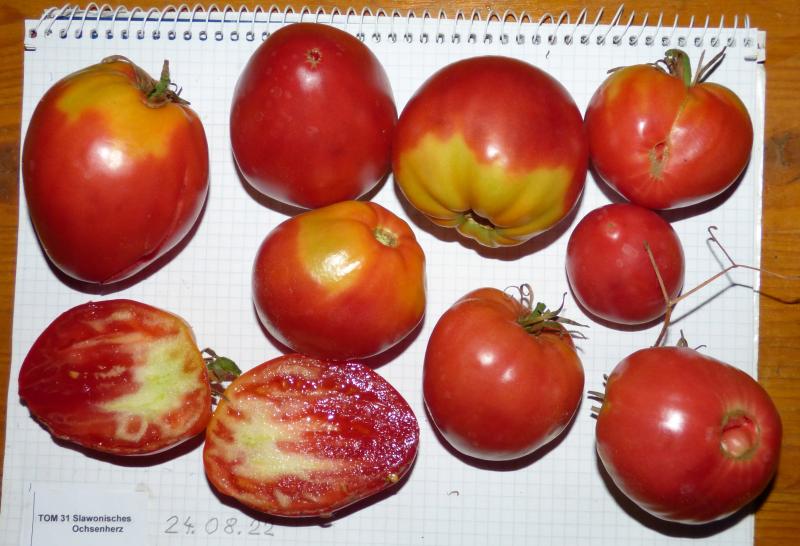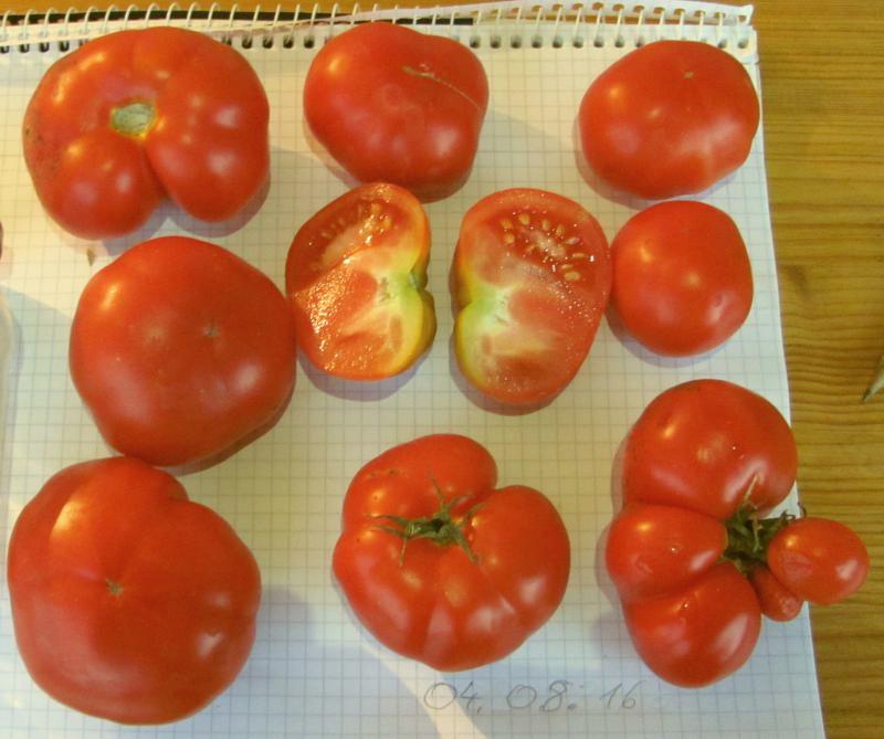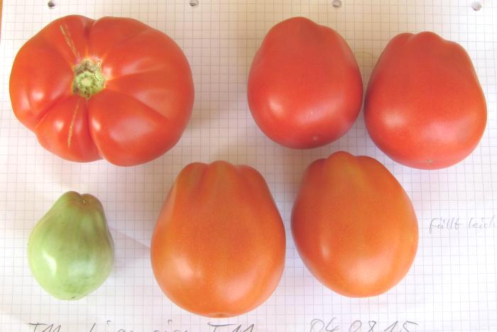 große Früchte vom Ketchup-Typ. Sind alle Früchte so länglich gewesen? Ich
