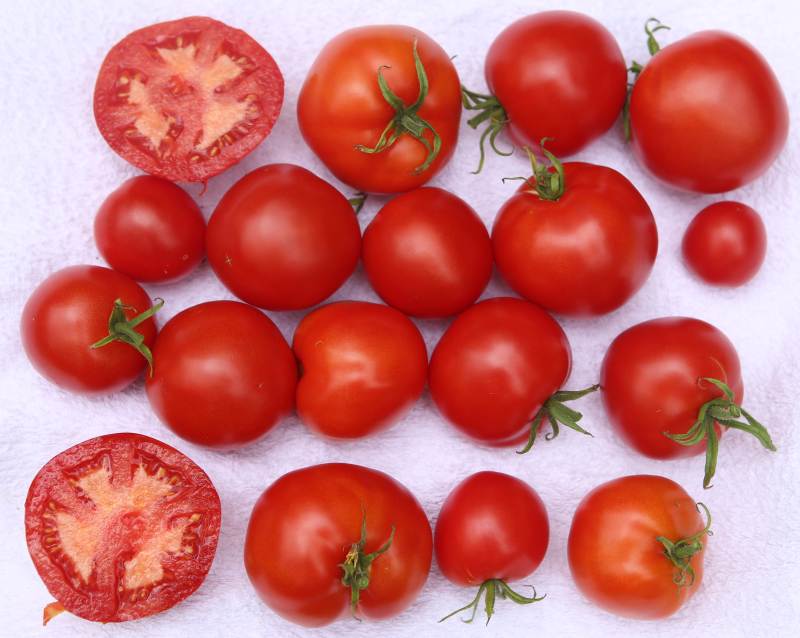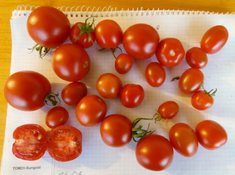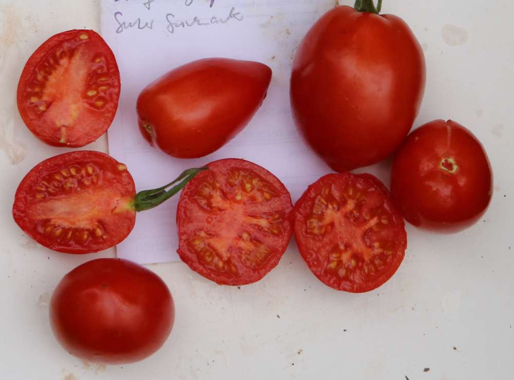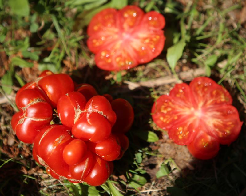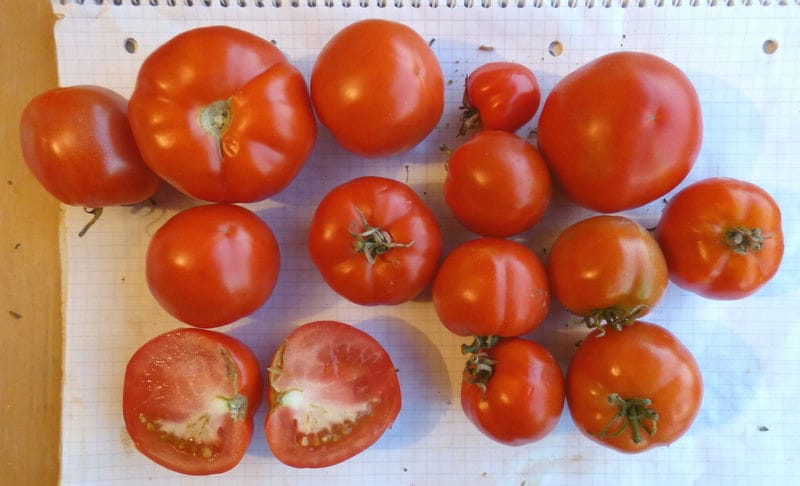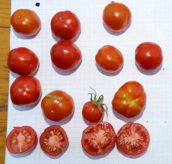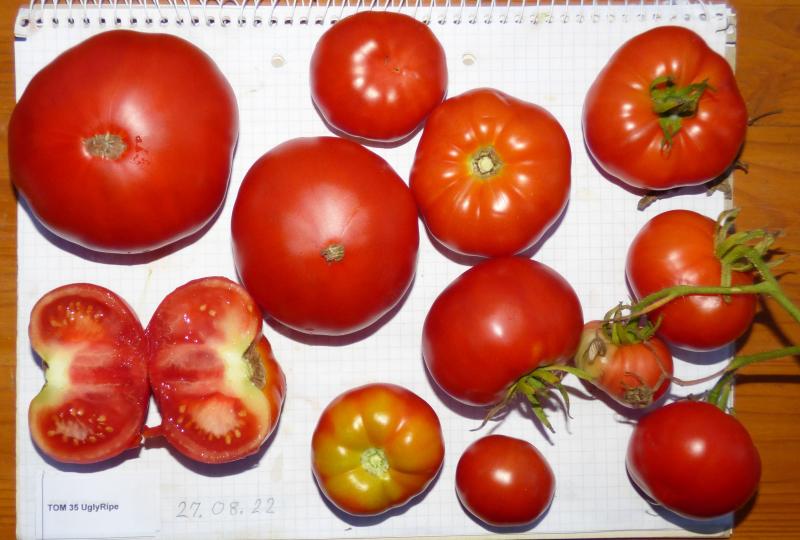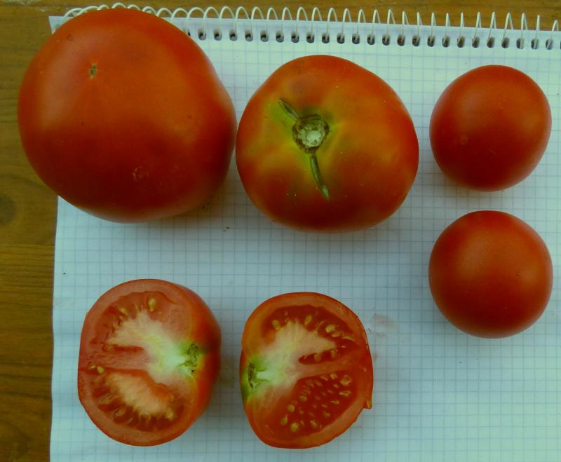 große Früchte vom Ketchup-Typ. Sind alle Früchte so länglich gewesen? Ich