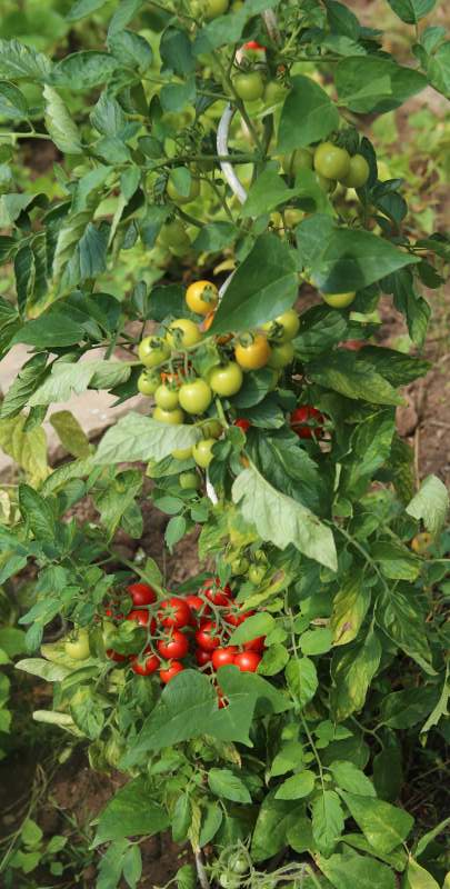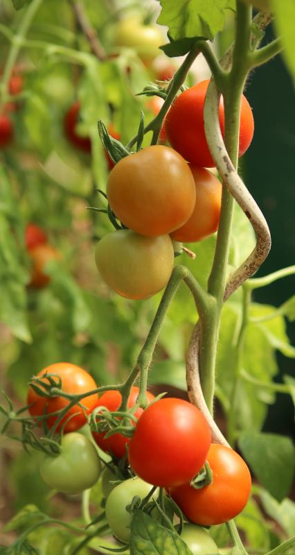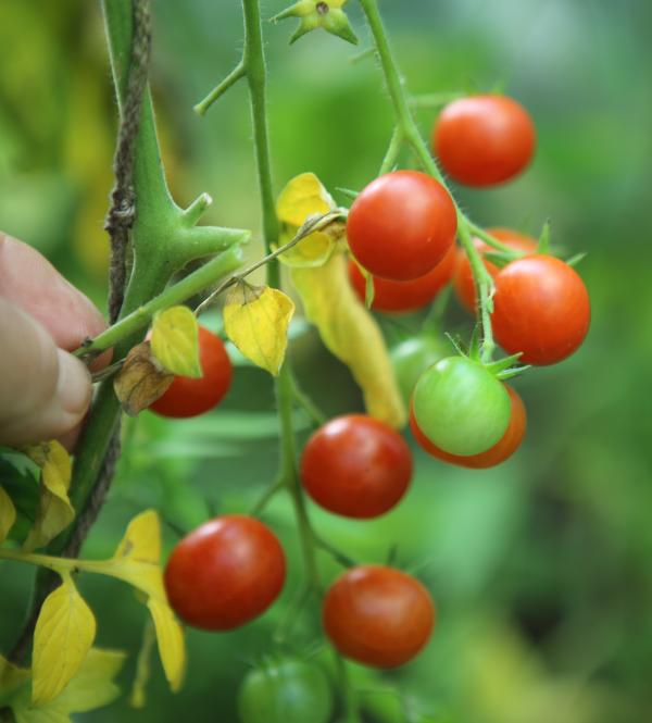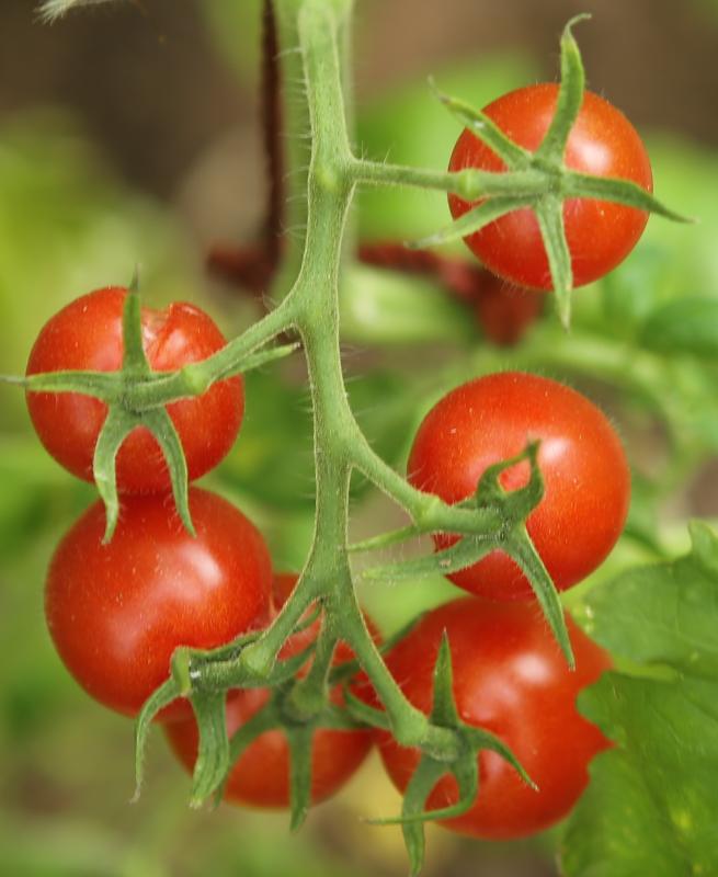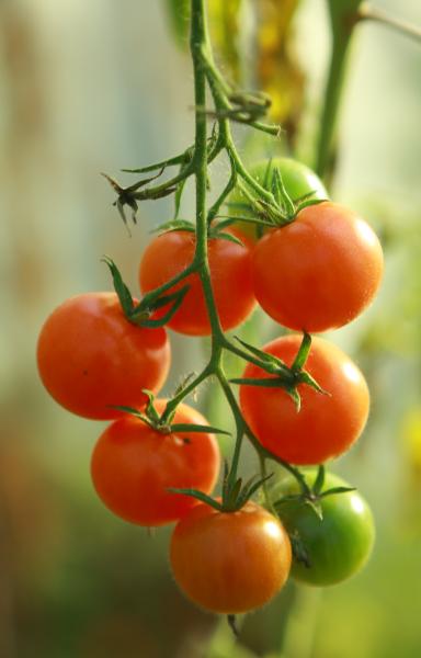 Kirschtomaten, fast schon in Trauben hängend (selten auch