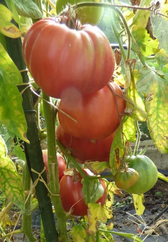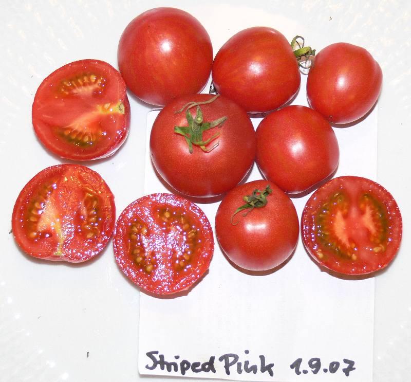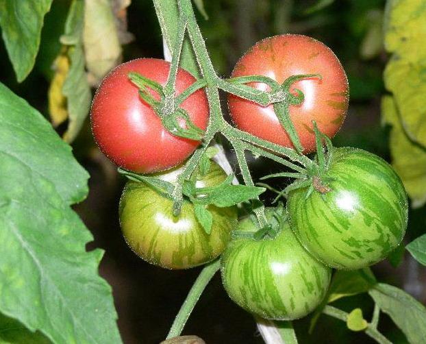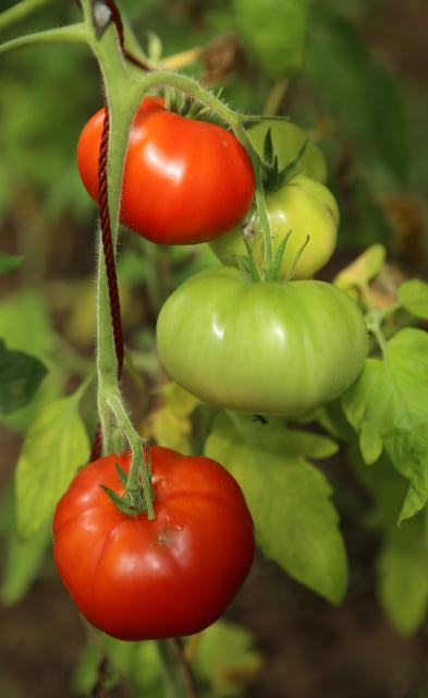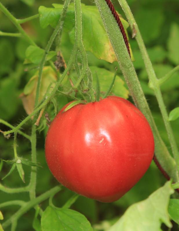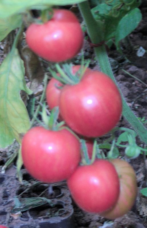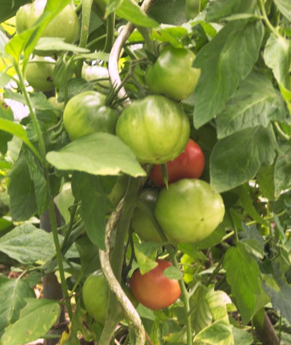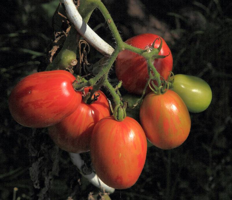 Erntebeginn. Stabtomate. Himbeerfarbige eher kleinkalibrige