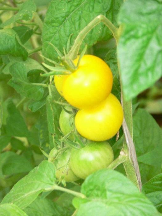 ZlatoSkifow(=Skytengold) [BB07] Goldgelbe Buschtomate. {09} Pfl. ca. 1m.