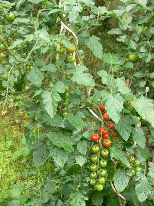 Kirschtomaten (bis 3cm) von 2,5m-Pfl., die selten platzen. Wohlschmeckend,