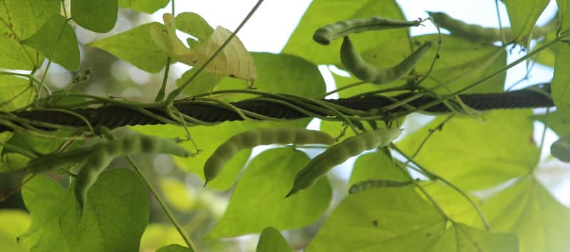abreifend als die übrigen Pflanzen, auffallend dünne Hülsen von 14-18cm Länge.