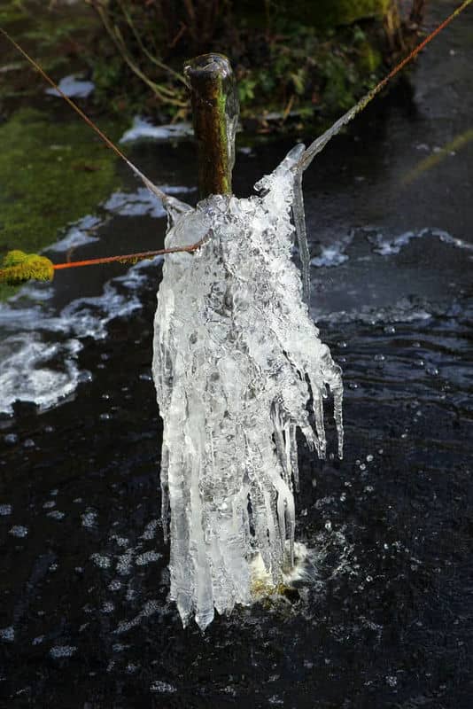 "Reich mir Deine Hand, lieber Eismann und führe mich durch die Kälte." Diese Skulptur hat mir mein Teichspringbrunnen in diesen Frosttagen gezaubert (das erste Bild ist ein Ausschnitt des zweiten).