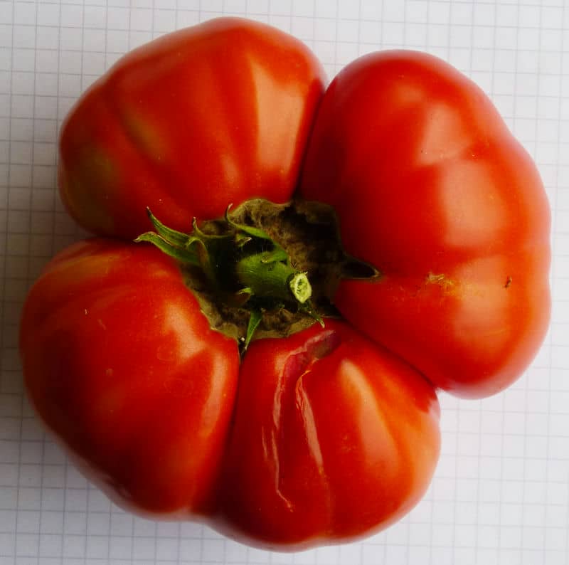 groß. {13} Pfl. ca. 2m hoch. Breite "riefelige" Fleischtomaten