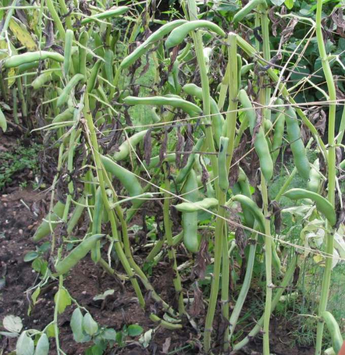 und breite Hülsen; Mitte September bis Anfang Oktober dürr. Ertrag mittel.