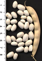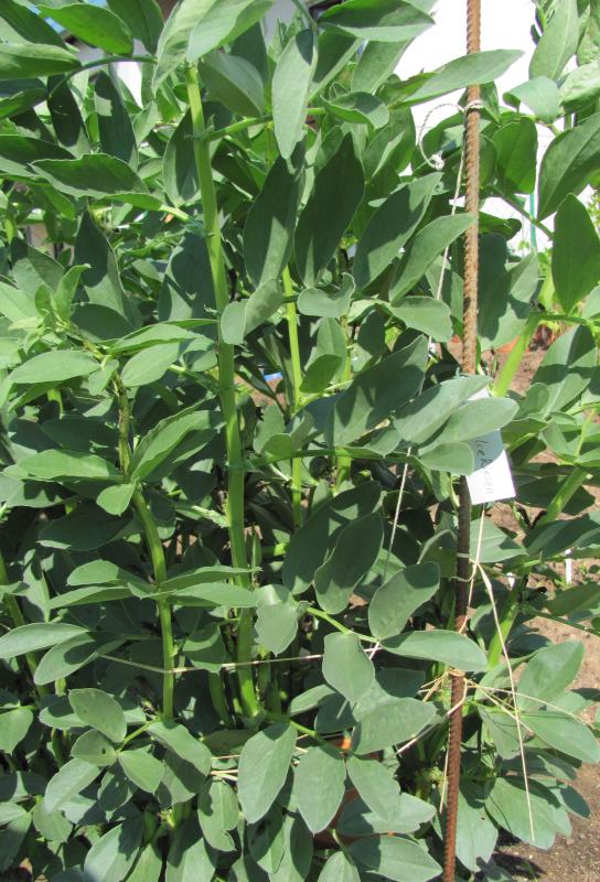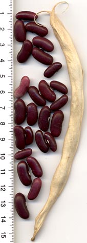 Pfl. 35-45cm; Hülsen 14-22cm, erntereif hellgelb mit leicht rötlicher