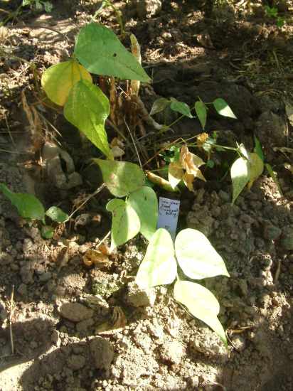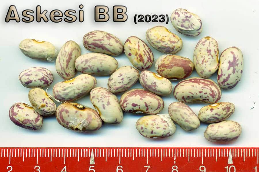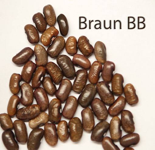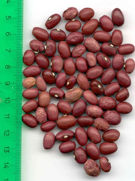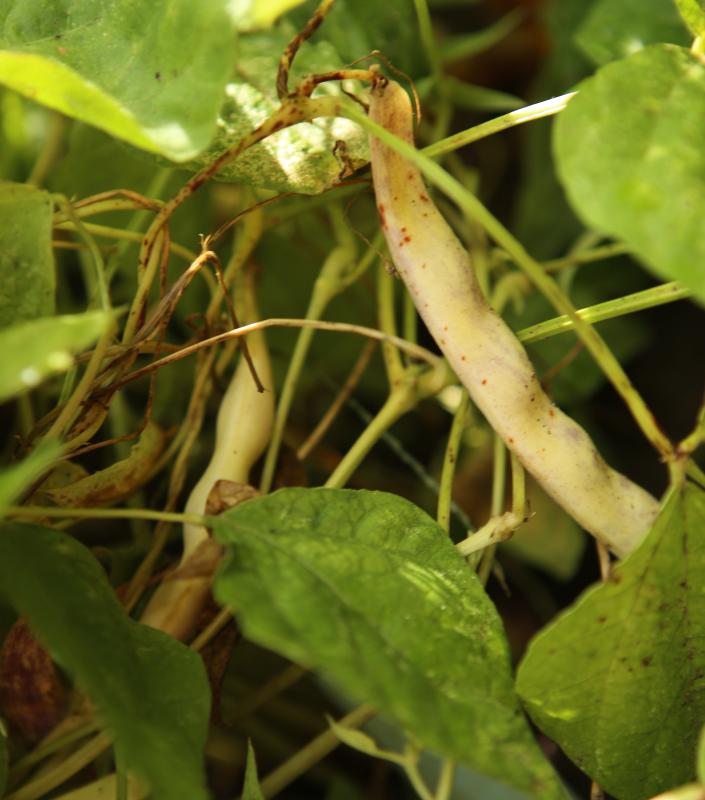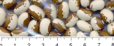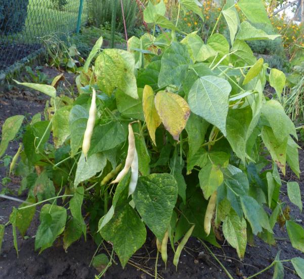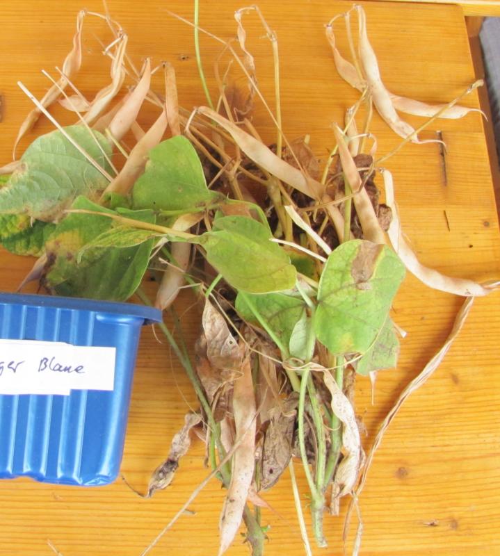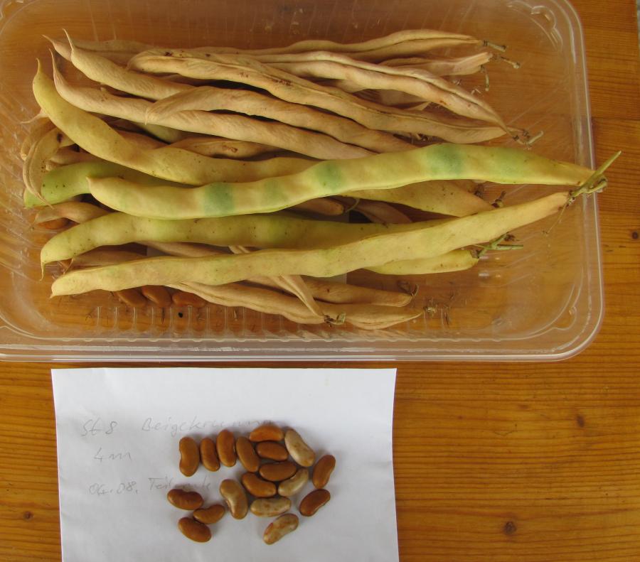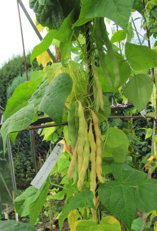 [MHä<14>] [RB<19>]Erst am 15.10. abgeräumt (noch viele grüne Hülsen). Ertrag: 60g. <23>: Späte unergiebige BB (nur ca. zehn Kerne geerntet). Nur wegen des hübschen Korns interessant (das anders ist als das Orig.!