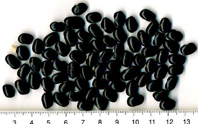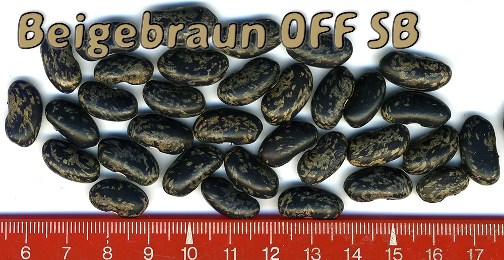 ist braunkernig!) <16>:Pfl. ca. 3m. Spät am 28.9. geht die Ernte erst richtig los. Ertrag gut. <19>:Ertragreich, aber spät (21.10.) Kerne variieren in Farbintensität und Helligkeit. Am 7.11. noch Nachzüglerernte mit deutlich größerem und variabel gefärbten Kernen (fast wie FB). Ausprobieren?? <23>: Niedrige SB ~1,5m. Ernte eher spät. Hülsen ~5cm, Kerne klein, fast schwarz.