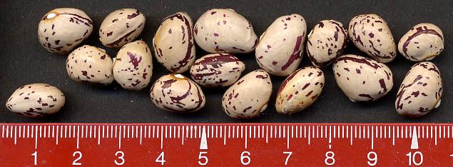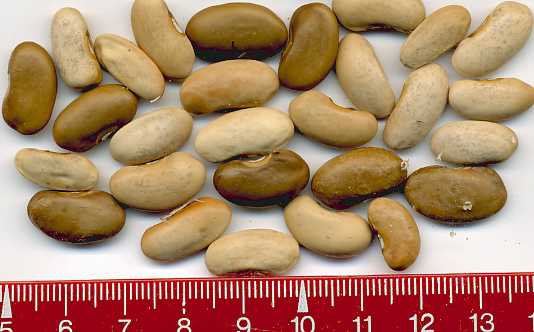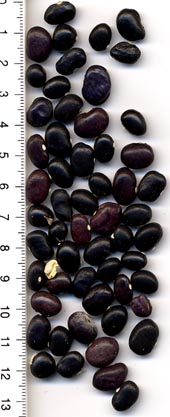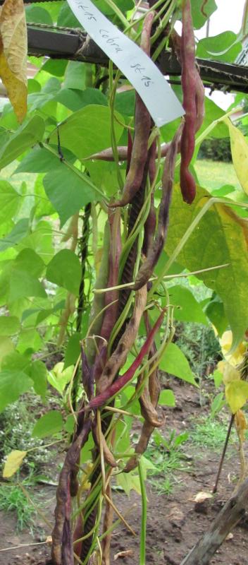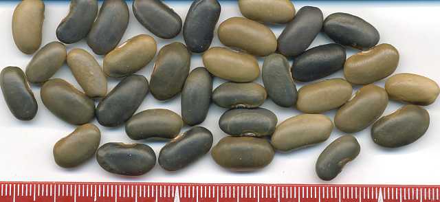 [MHä<16>] [RB<19>]Spät! Am 1.10. noch etliche Hülsen grün. Geerntet 60g. (im Prinzip ertragreich). [MHä<20>] <23>: Pfl. eher KB. Furchtbar spät (am 1.11. abgeräumt). Nur wenige Hülsen geerntet. Sorte nur wegen der exotischen Kerne interessant.