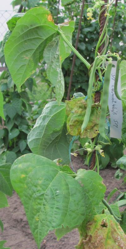 ] Sehr niedrige SB. Ernte am 19.8. Hülsen bis 10cm, etliche sind leer. Ertrag geht für diese Dürresaison. Sorte weiter beobachten! <21>:Pfl. ca. 2,5m. 13.9. gute Ernte. Hülsen ca. 10cm