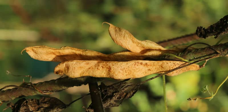 Früh, aber nur 5 Hülsen geerntet (Wassermangel im Juli?). Kerne nicht