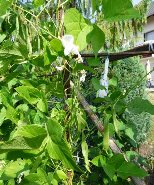 50cm hoch, Hülsen 10-14cm, mäßige Ernte im September. [UE<05>]
