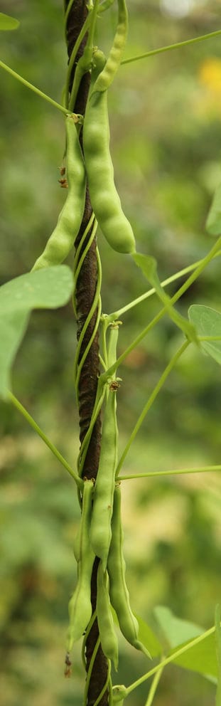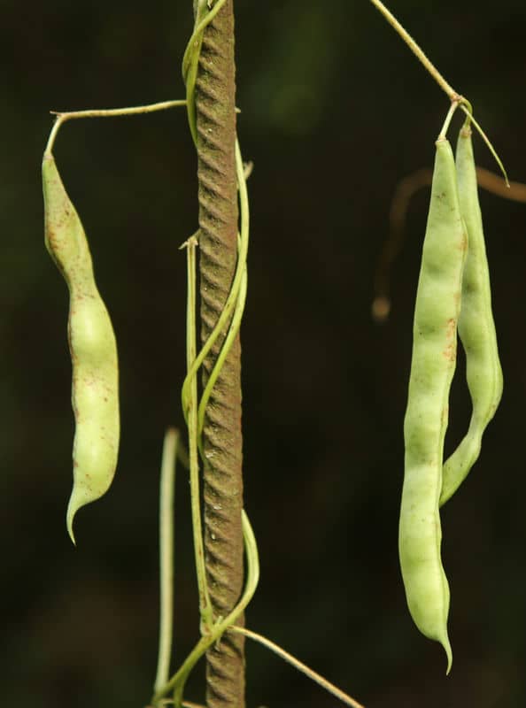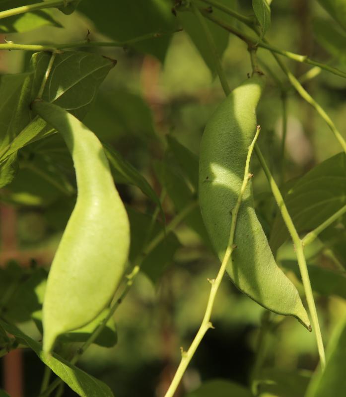 abreifend als die übrigen Pflanzen, auffallend dünne Hülsen von 14-18cm Länge.