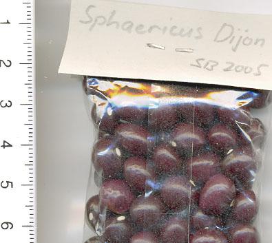 mit großen graurunden Kernen, schwer zu pulen (fadenlos?), zart gemustert (auch noch bei Dürr-Reife erkennbar). Guter Ertrag für diese Saison. <24>:Pfl. 2,5m. Geringe Ernte gegen Ende August