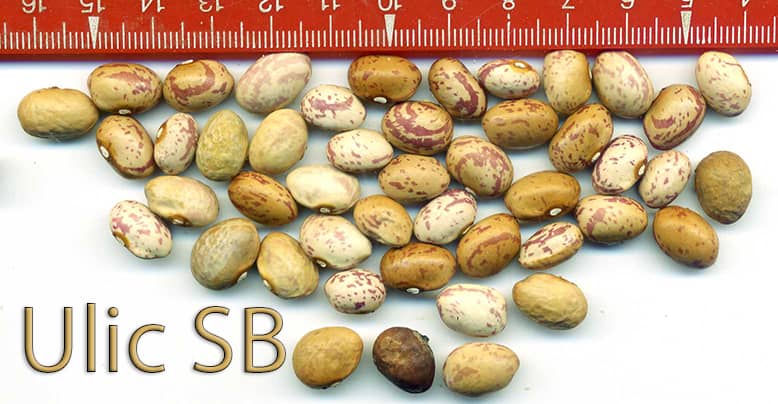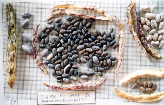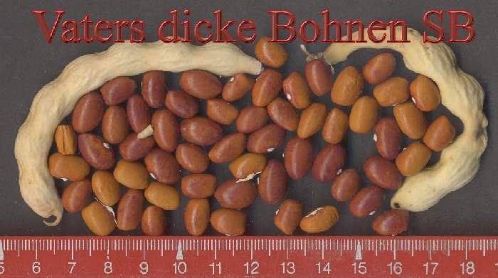 Linie recht homogen und unbedingt erhaltenswürdig. [MHä<17>] <20>: Pfl. >2m. Ende August zu 50% reif, folgernde Ernte aber bis 10.11.: Knubbelhülsen bis 10cm, hübsch lilagrün gesprenkelt (dürr einfarbig)