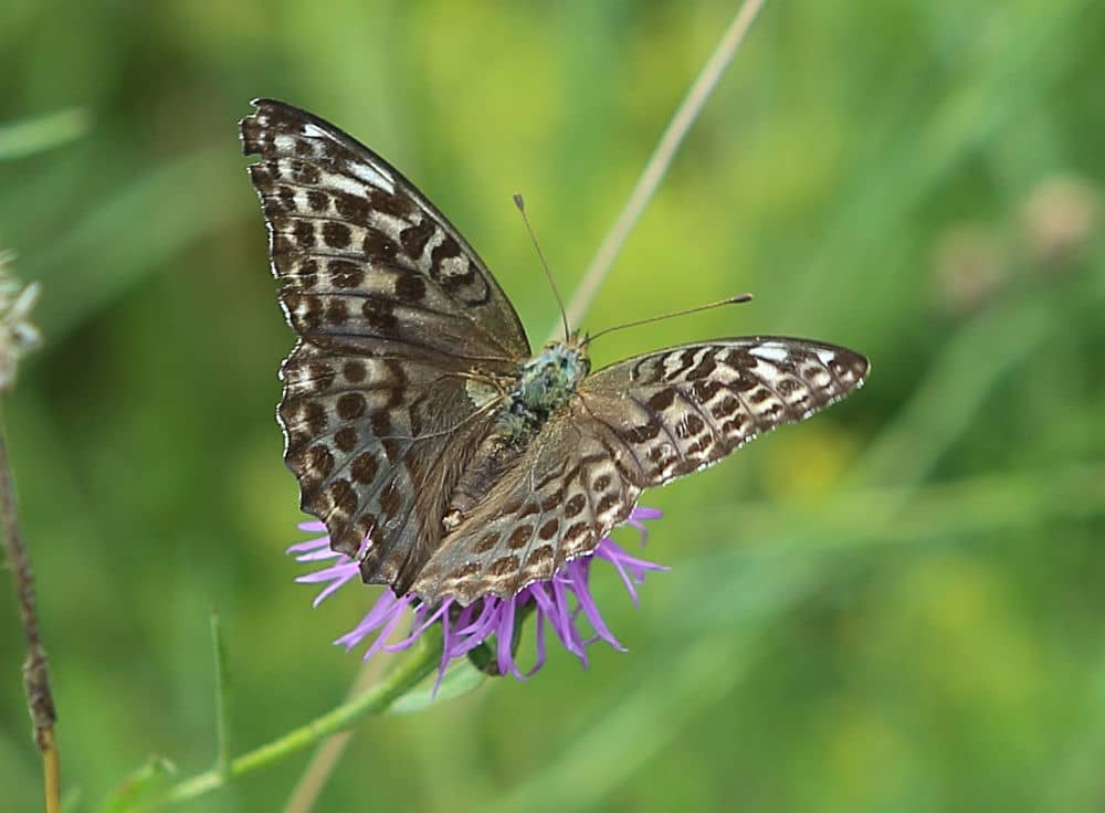 Der imposanteste einheimische Perlmuttfalter, Waldrand- oder Waldlichtungsbewohner, ist hier in der Nähe die häufigste Perlmuttfalterart. Im Bild ein Männchen, erkennbar an den breiten Linien (Duftschuppen).