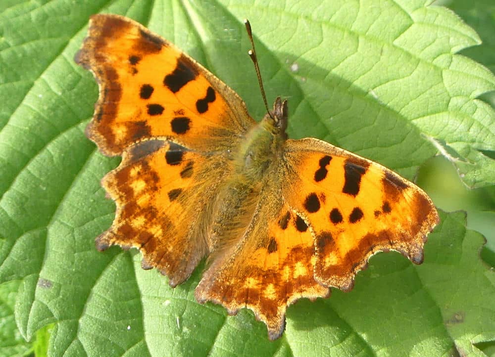 Das „C“ auf der Unterseite des Hinterflügels ist unverkennbar. Auch die "zerklüftete" Flügelform ist typisch (s. zweites Bild, das die Innenseite der Flügel zeigt).