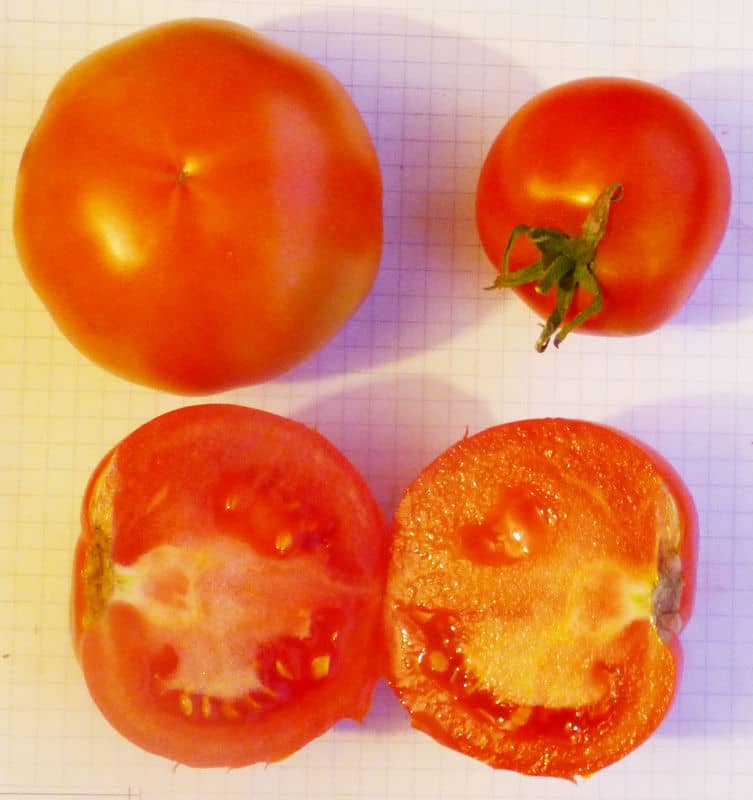 schmeckende ertragreiche Fleischtomate kleineren Kalibers; wenig